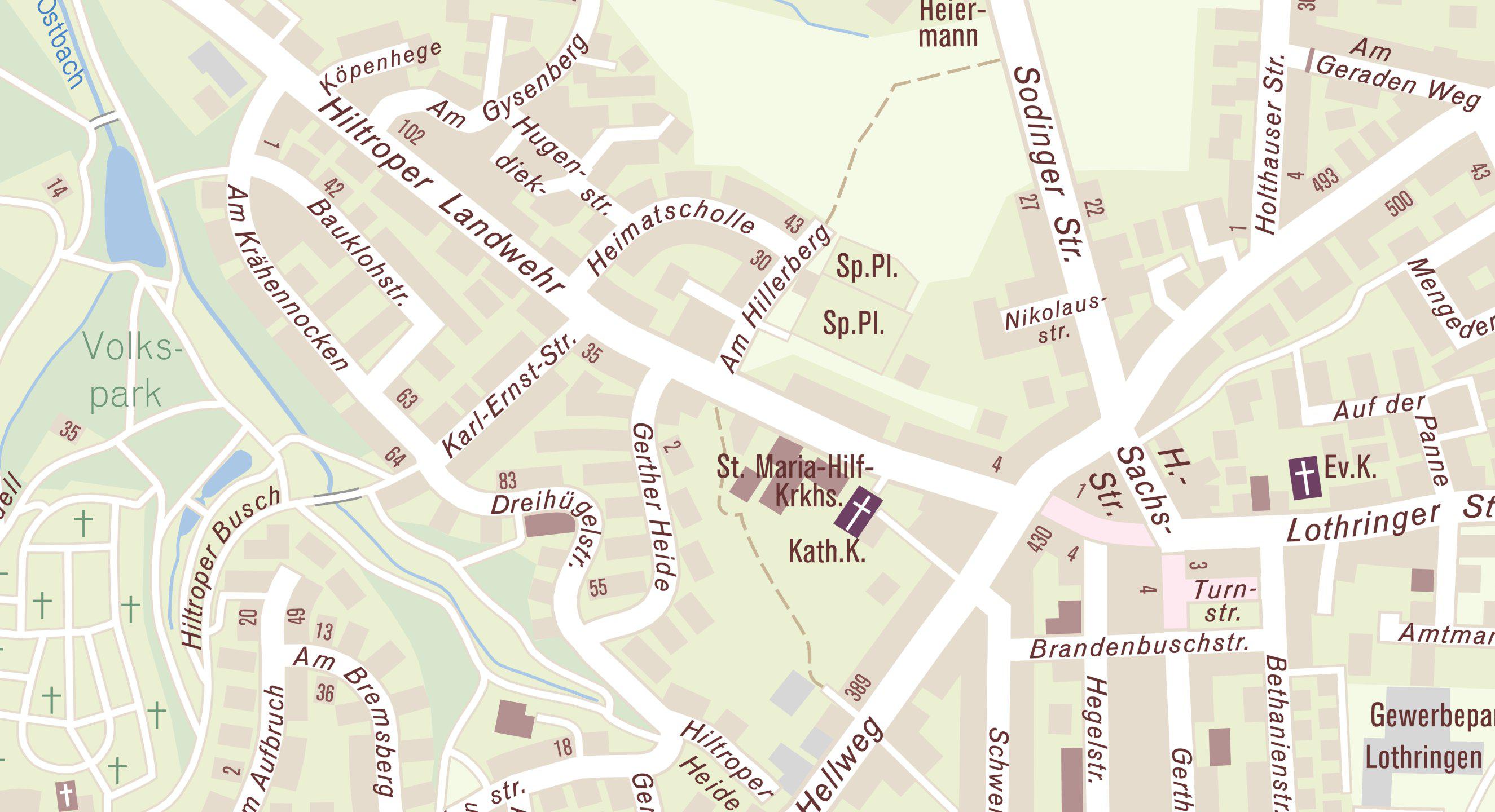 Treffpunkt: Wildnis in Hiltrop: Zuwegung Hiltroper Landwehr zwischen Haus-Nr. 19 / 21