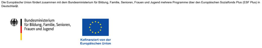 Das Projekt „Bochumer Netzwerke-mit Elternbegleitung Familien stärken“ wird im Rahmen des ESF Plus Förderprogrammes „ElternChanceN - mit Elternbegleitung Familien stärken“ durch das Bundesministerium für Familie Senioren Frauen und Jugend (BMFSFJ) und durch die Europäische Union über den Europäischen Sozialfonds plus (ESF Plus) gefördert.