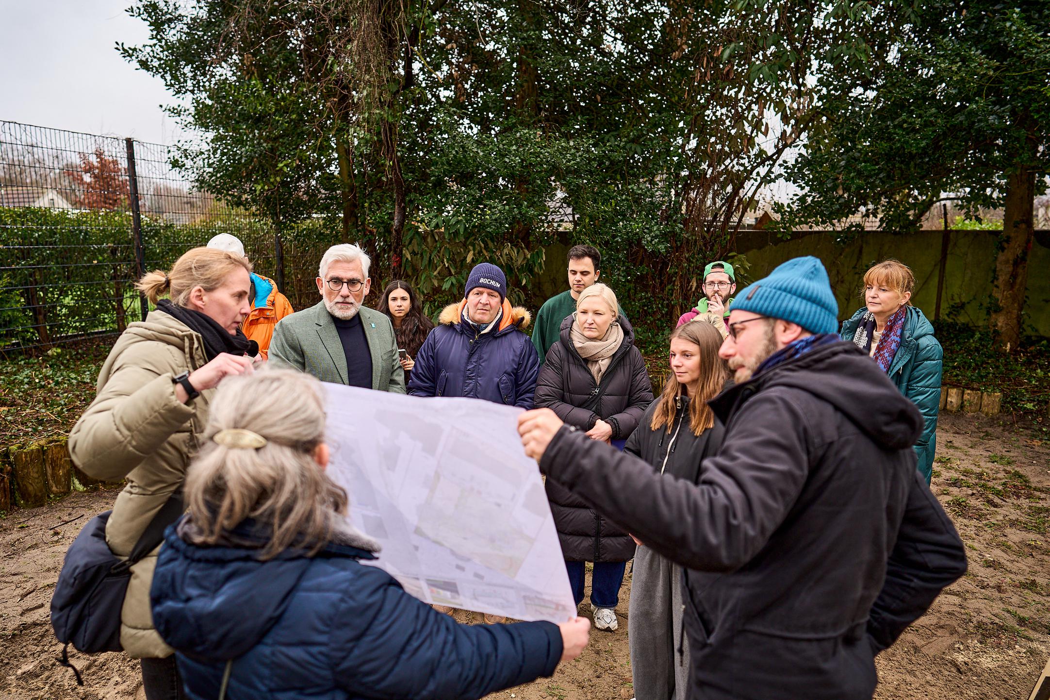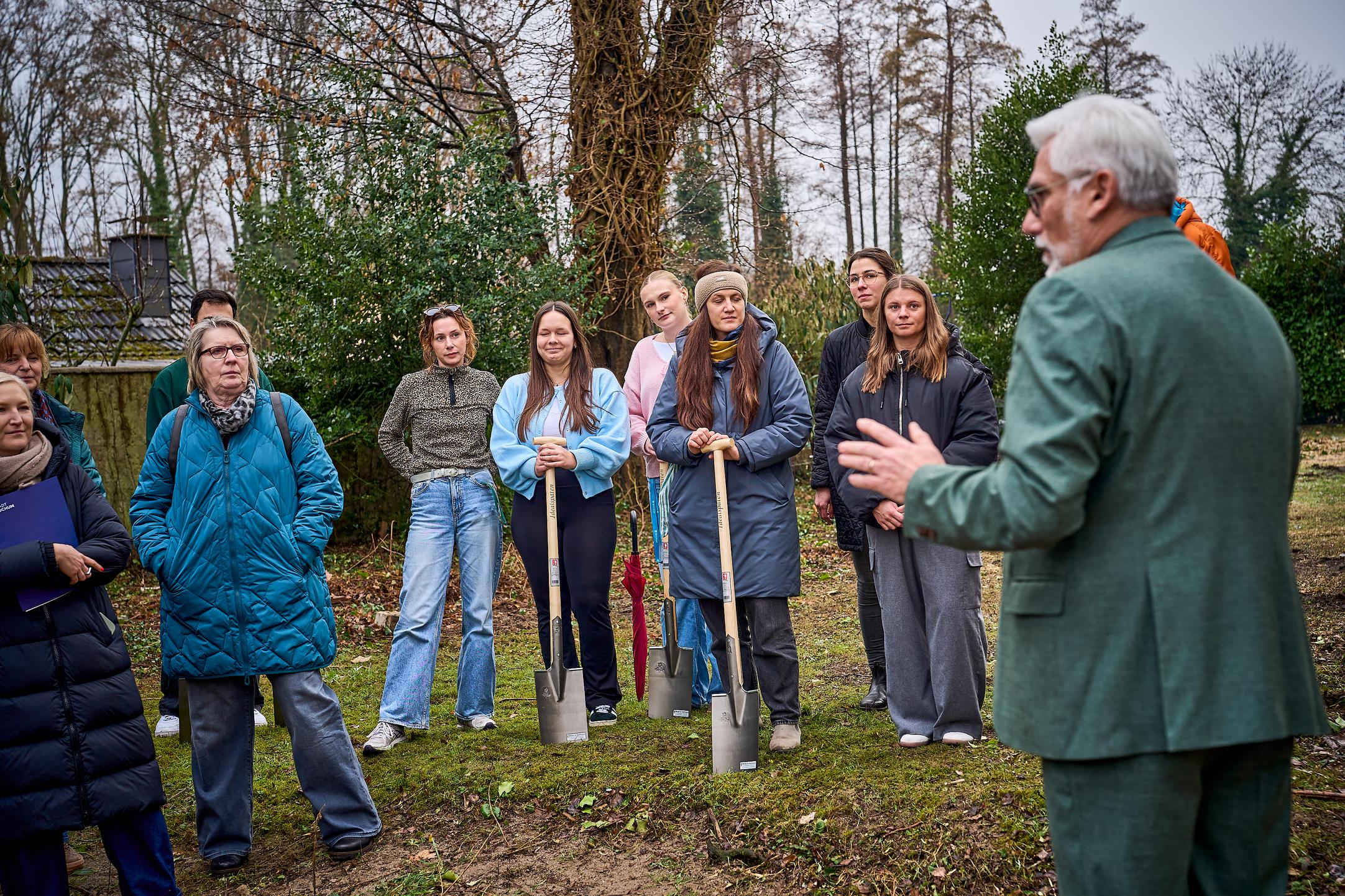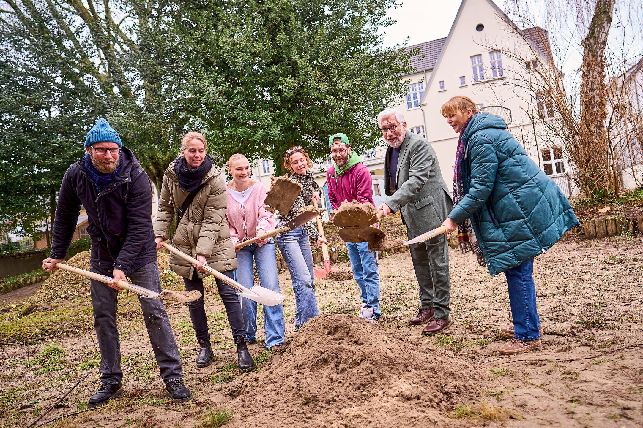 Das rund 2.300 qm große Außengelände des Jugend- und Stadtteilzentrums „JUSH“ in Hamme, Amtsstraße 10-12, wird in den nächsten Monaten neu strukturiert und zu einem „Begegnungsgarten“ umgebaut. Am Mittwoch, 11. Februar, hat Oberbürgermeister Jörg Lukat den offiziellen ersten Spatenstich gesetzt. Für den Begegnungsgarten haben Bund und Land insgesamt 626.000 Euro Städtebaufördermittel bewilligt. Voraussichtlich bis Ende Juni sollen die Maßnahmen abgeschlossen sein.