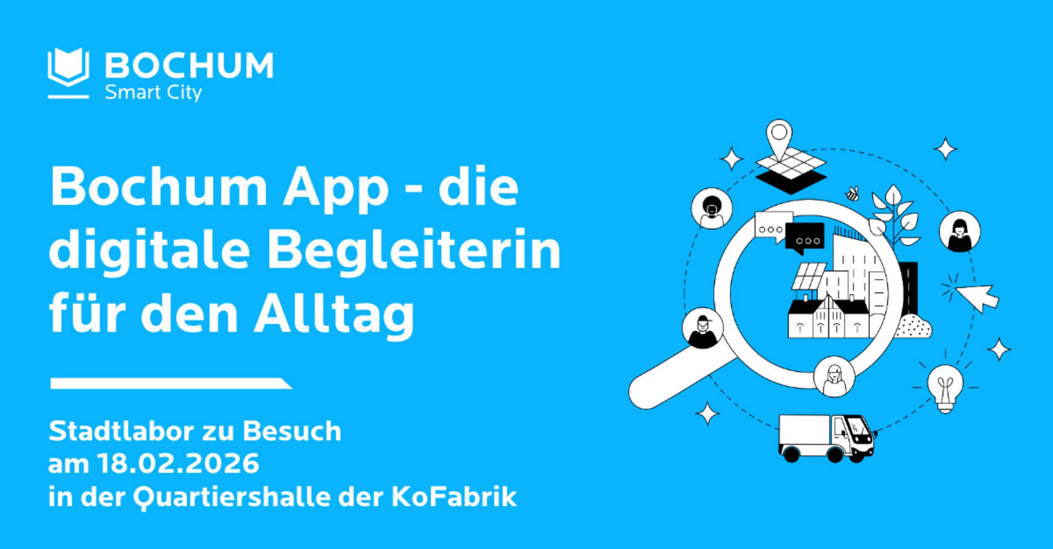 In Zusammenarbeit mit den Seniorenbüros findet am Mittwoch, 18. Februar, das „Stadtlabor zu Besuch“ in der Quartiershalle, Stühmeyerstraße 33, statt. Die Veranstaltung beginnt um 14:30 Uhr und stellt die unterschiedlichen Services der Bochum App vor. Die Teilnahme ist kostenlos. Anmelden kann man sich unter www.bochum-smartcity.de/event/stadtlabor-zu-besuch-bochum-app-die-digitale-begleiterin-fuer-den-alltag/.