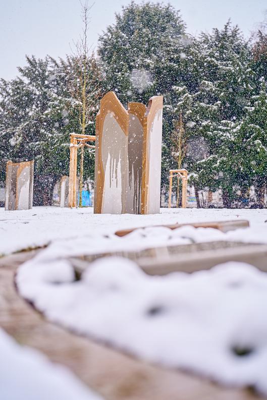 Neben den Grabanlagen, die bei beiden Bestattungsarten in runder Form angelegt wurden, sind neue Wege und ein Bankplatz entstanden. Die Anlage wurde vollständig von den Ausbildungsjahrgängen der Ausbildung zum Garten- und Landschaftsbau im Technischen Betrieb ausgebaut. Die Ausbaukosten belaufen sich auf ungefähr 83.000 Euro.