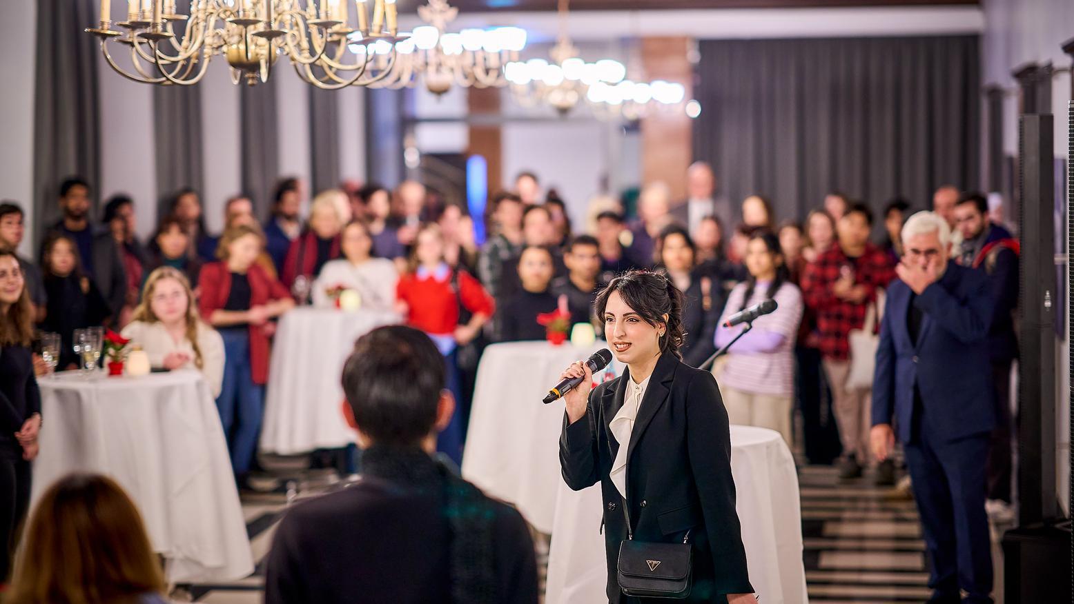 Oberbürgermeister Lukat setzt mit dem jährlichen Empfang im Rathaus eine Tradition der vergangenen Jahre fort. Als Gesprächspartnerinnen und -partner standen dieses Mal unter anderem Prof. Martin Paul, der Rektor der Ruhr-Universität, Prof. Jörg Frochte, der Vize-Präsident der Hochschule Bochum, eine Gastwissenschaftlerin aus Kenia, Frau Betty Njagi, Frank Weeke, der Geschäftsführer des Akademischen Förderungswerks, und Sandra Gagliardi, die Geschäftsführerin von Bochum Marketing, zur Verfügung. Durch den Abend führte wie schon im vergangenen Jahr die Ruhr-Universitäts-Studentin Yazgi Yilmaz.