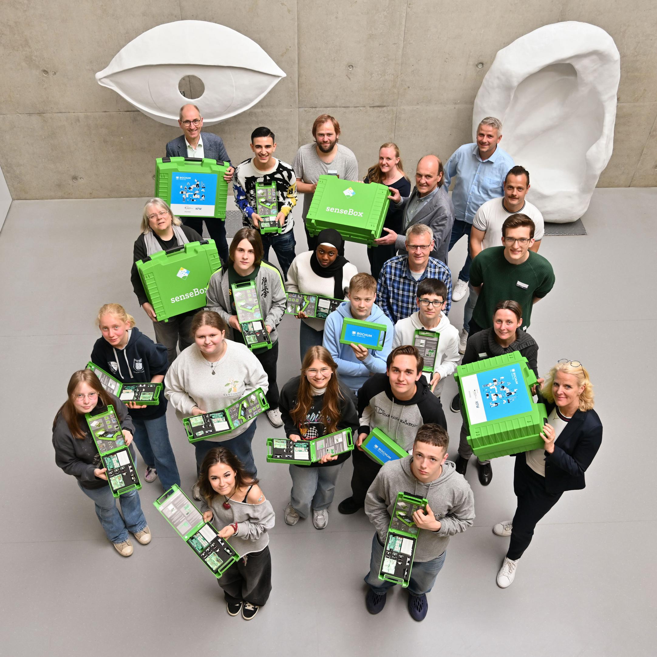 Die Stadt Bochum und die Stadtwerke statten die weiterführenden Schulen mit modernen Experimentier- und Forschungsstationen aus. Die so genannten Senseboxen erfassen Klimadaten und erlauben deren Dokumentation. Insgesamt gibt es 22 dieser Boxen, die rotierend allen weiterführenden Schulen zur Verfügung gestellt werden. Stadtwerke-Geschäftsführerin Elke Temme und Schuldezernent Dietmar Dieckmann haben am Freitag, 24. Mai, die erste Sensebox der Erich-Kästner-Gesamtschule übergeben.